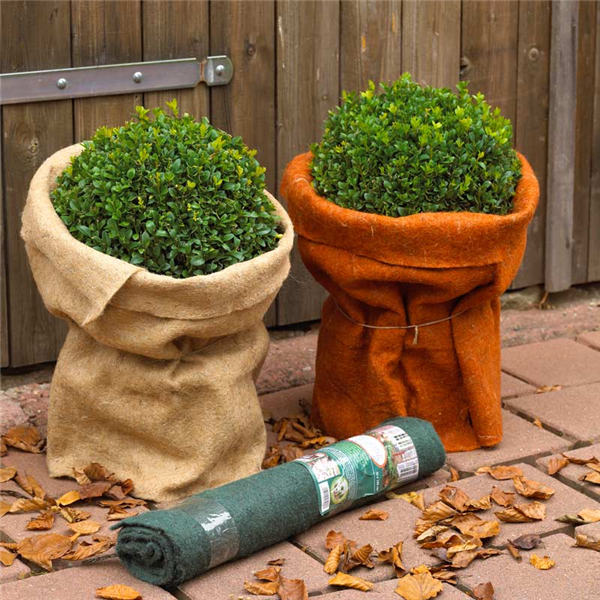 Der plötzlich auftretende und lang anhaltende Winter ist den meisten Gartenfreunden noch gut in Erinnerung. Die heftigen Wetterumschwünge und der frostige Winterwind setzen die Pflanzen unter „Stress“. Bereits im Spätherbst sollten Pflanzenkronen mit Vliesen oder Jutegeweben geschützt werden, um für den Winter gerüstet zu sein. Frisch gepflanzte und empfindliche Pflanzenarten wie z. B. Rosen oder auch alle mediterranen Gewächse sollten bereits vor leichten Temperaturschwankungen durch Frost in der Nacht und Sonne am Tag geschützt werden. Bereits Temperaturen von tagsüber sonnigen + 5 C° und Nachts frostigen, - 3 C° können zu Schäden an Wurzel und Krone führen. Vliese und Jutegewebe sind hervorragend geeignet die Kronen Ihrer Pflanzen im Winter zu schützen. Der Kronenschutz verhindert, dass die Pflanzen bei gefrorenem Boden und starker Wintersonne austrocknen. Ohne Schutz der Pflanzkrone verdunsten die Blätter durch die Sonnenstrahlung ständig Wasser. Aus dem vereisten Boden kann die Pflanze aber kein Wasser aufnehmen, um den Verlust auszugleichen und trocknet nach kurzer Zeit aus.