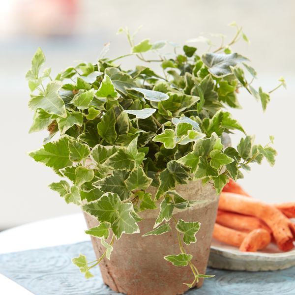 Alles Gute kommt von oben – das trifft auch auf den Efeu zu. Als Hängepflanze sorgt auch er für gute Luft. Als natürliche Klimaanlage filtert er die Raumluft und reguliert die Luftfeuchtigkeit für ein rundum angenehmes Raumklima. Sein Gattungsname „Hedera“ hat den Ursprung im Griechischen und lässt sich vom Wort „hedra“ für „sitzen“ ableiten, womit die Haftwurzeln des Efeus gemeint sind, die der Pflan-ze Halt geben. Der lateinische Name „helix“ bezieht sich auf seine windende Wachsform. Efeu bevorzugt einen hellen Standort ohne direkte Sonneneinstrahlung. Generell gilt die Regel: Je heller die Blätter des Efeus, desto heller kann die Pflanze stehen. Gießen Sie ihn regelmäßig und besprühen Sie das Laub ab und an mit lauwarmem, kalkarmem Wasser, da die Pflanze keine trockene Luft verträgt.
