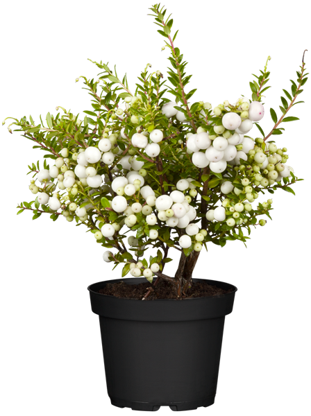 Die Topfmyrte ist ein kompakt wachsender, verzweigter Strauch, der eine Höhe von bis zu 60 Zentimetern erreichen kann. Die Blätter sind klein und ledrig, mit einer glänzend dunkelgrünen Oberfläche. Sie verströmen einen aromatischen Duft, wenn man sie zerreibt. Im Sommer bildet die Myrte zierliche, weiße Blüten, die in den Blattachseln erscheinen. Diese sternförmigen Blüten haben einen angenehmen Duft und sind oft von einer Vielzahl von gelblichen Staubblättern umgeben. Nach der Blüte entwickeln sich kleine, blauschwarze Beeren.